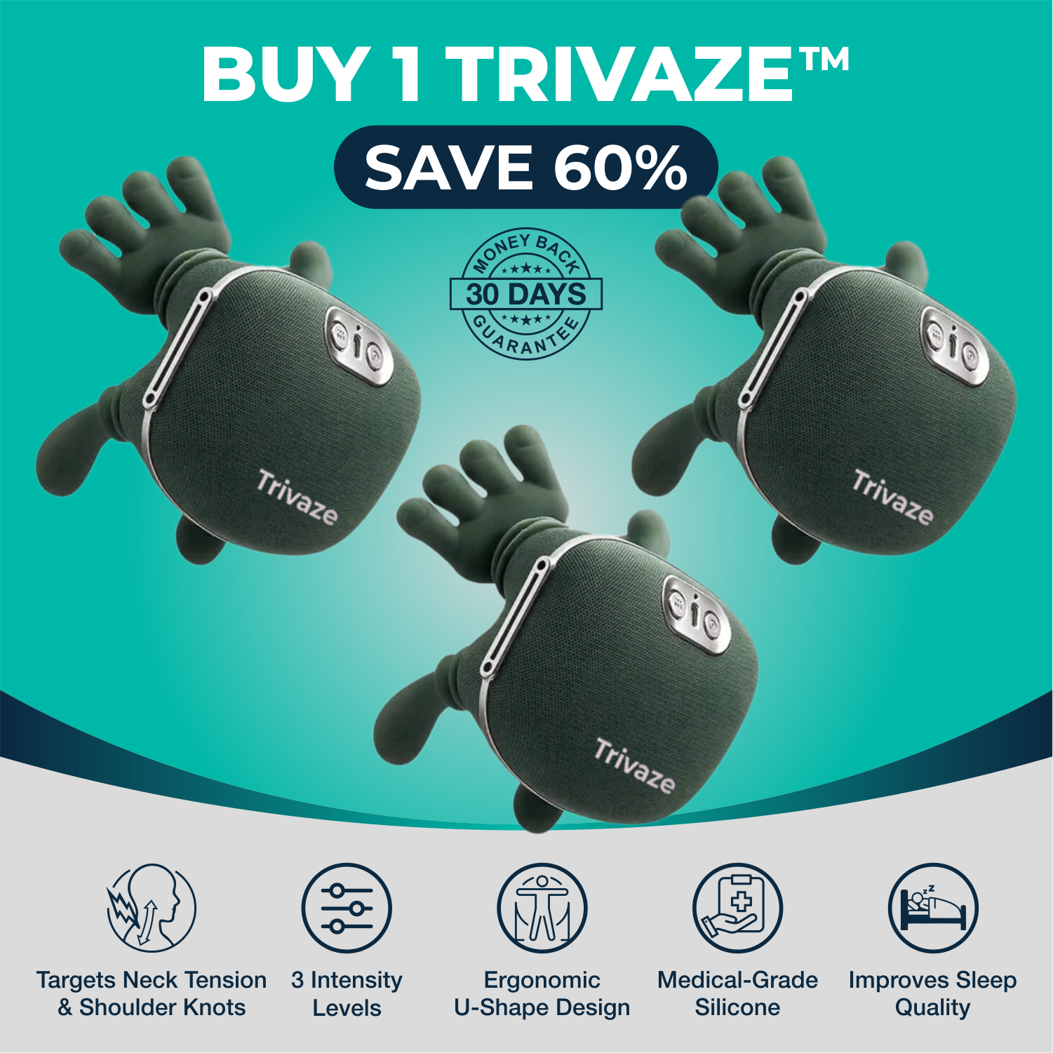 Trivaze targets this in just 15 minutes daily. Deep-kneading massage breaks up muscle adhesions while therapeutic heat increases circulation to flush toxins and deliver healing nutrients.